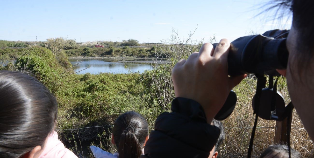 Binoculares. Los visitantes observan el paisaje de la Reserva. Una experiencia ideal para tomar contacto con la naturaleza.