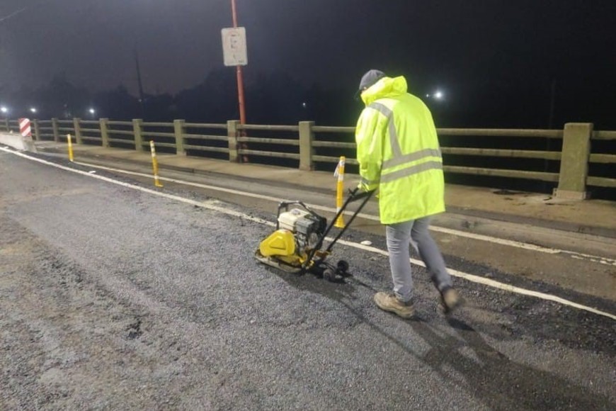 Este lunes por la noche y martes en la madrugada se llevaron a cabo trabajos de reparación en las rampas de acceso al puente metálico de emergencia montado sobre el Puente Carretero que conecta la ciudad de Santa Fe y ciudad de Santo Tomé.