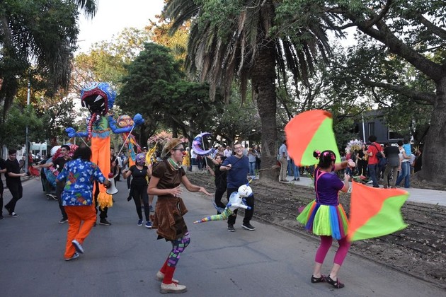 Con la evocación de aquellos gloriosos corsos del ‘40 —donde venían a participar comparsas de todo el país—, no faltaron en la fiesta inaugural las carrozas, las mascaritas y las murgas, y se sumaron a la celebración marionetas construidas en “Carnavaleando”, es decir, los talleres que se realizaron durante el verano en la Mediateca La Cumbia.