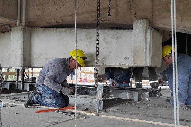 El procedimiento de fijación final comprende el izado de las vigas suplementarias y su ajuste con los tensores metálicos tomados de la propia estructura del puente. De esta forma, el nuevo soporte sostiene de manera complementaria el tramo "Gerber" apoyado entre los tableros con pilotes. Las seis nuevas ménsulas se disponen de manera preventiva en estos apoyos para evitar posibles afectaciones en el viaducto.