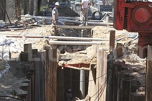 En una primera etapa, los trabajos consistieron en la ejecución de 18 perforaciones que sirvieron para la depresión de napas y la colocación del sistema de tablaestaqueado de aseguramiento del terreno.