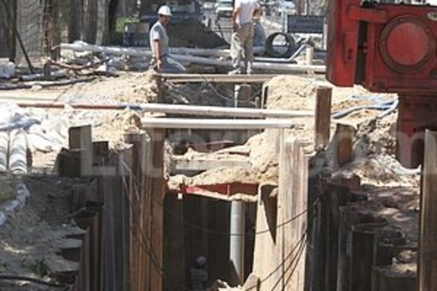 Actualmente, se avanza en la excavación sobre el colector existente, a más de 7 metros de profundidad. La idea es construir allí una platea de hormigón armado que estará sostenida por seis pilotes que ya fueron colocados a 11 metros de profundidad. Sobre dicha platea se montará una de las dos cámaras de la nueva cañería.