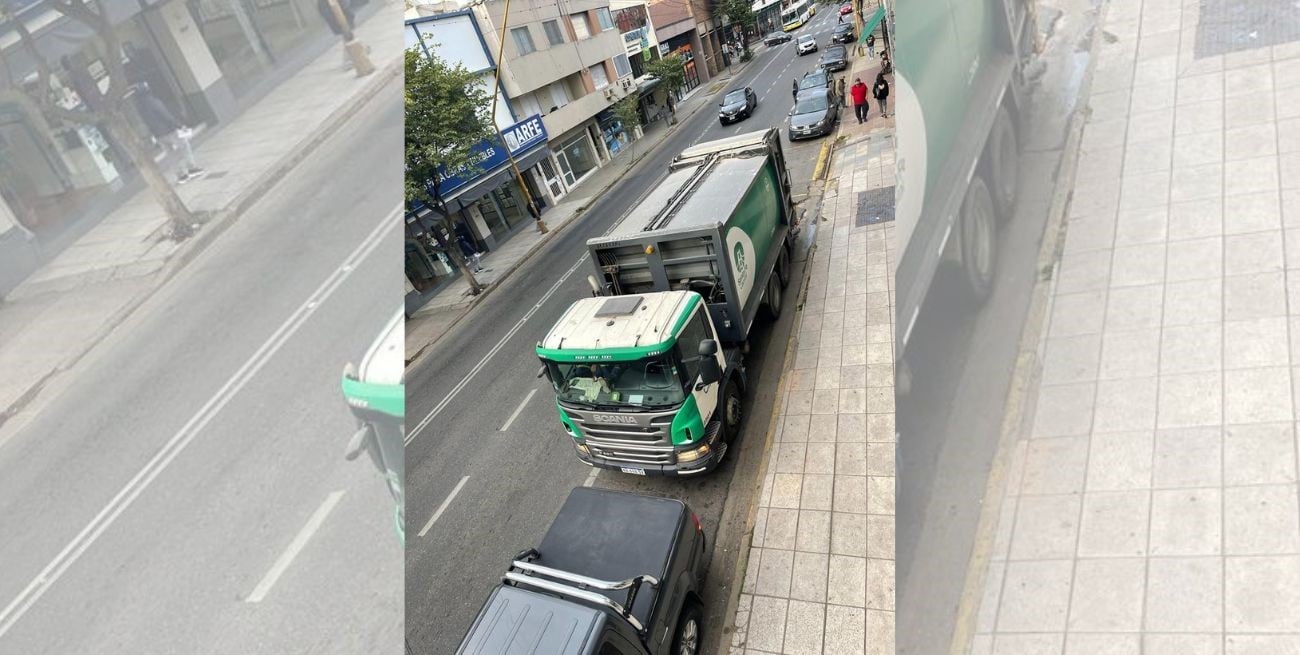 Un vehículo municipal de gran porte y otros autos mal estacionados dificultaron el acceso a la cochera de un edificio céntrico de la ciudad.