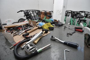 Taller. Son 10 las personas que trabajan a diario en el mantenimiento de las bicis.