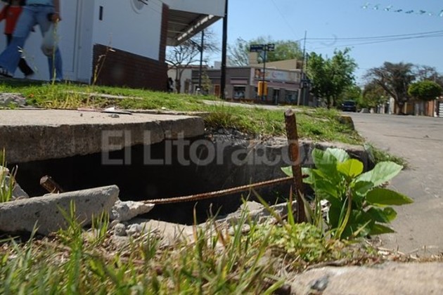 Un lector de El Litoral contabilizó no menos de 50 tapas que están en mal estado o directamente faltan, con lo cual el riesgo para los peatones y vecinos es alto. Estos conductos pluviales subterráneos tienen una profundidad de aproximadamente dos metros desde la superficie y, en algunos casos, el tamaño de las capas que recubren el ingreso supera el metro cuadrado.