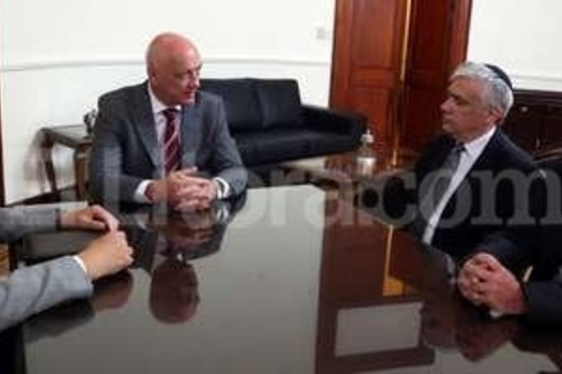 Antonio Bonfatti recibió este martes a Horacio Roitman, de la DAIA filial Santa Fe y Gabriel Pivin, presidente de la Comunidad Israelita de la capital provincial en el marco de la presentación del nuevo rabino, Efraim Rosenzweig.