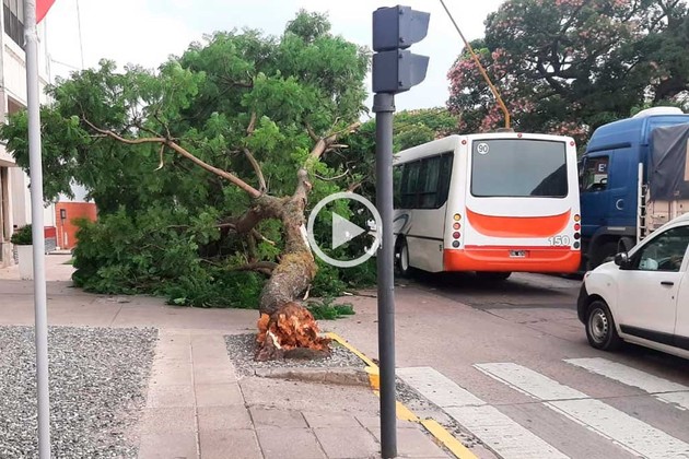 Con el árbol caído, la calzada quedó reducida y se generaron complicaciones con el tránsito en ese sector, sobre todo teniendo en cuenta que es sobre la calle de acceso a la terminal de ómnibus “Manuel Belgrano”.