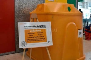 Los cestos especiales son muy sencillos de identificar: son de color amarillo y tienen una tapa con círculos en su contorno. A los pocos minutos de su colocación en el Mercado Norte, una vecina se acercó y dejó una caja repleta de aparatos en desuso.