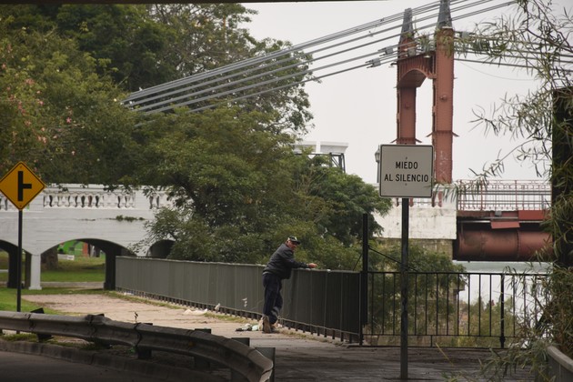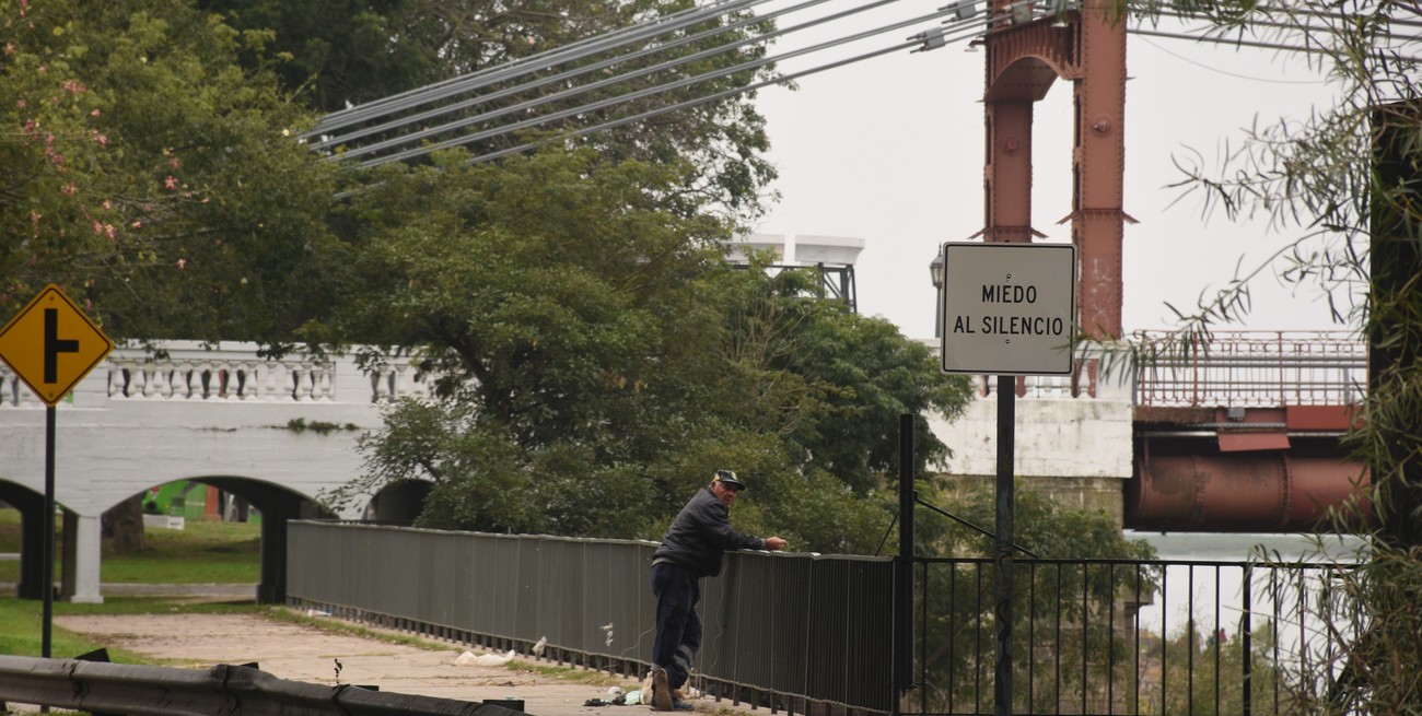 Está claro que se trata de una vieja señal de tránsito reescrita y no de alguien que se haya tomado el trabajo de cavar un pozo, plantar un tirante de madera con base de cemento y atornillarle un cartel con un singular mensaje: MIEDO AL SILENCIO.