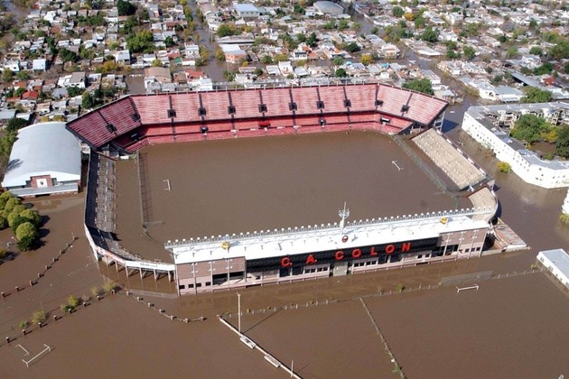 -Hay algunas fotos de Colón que quedarán hasta el final de los días: los arcos de la cancha tapados con el agua y los autos del famoso bingo flotando…