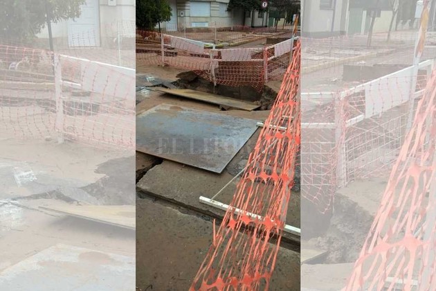En la intersección de calles Güemes y Gobernador Candioti, cedió parte del pavimento en la zona donde se realiza la obra del acueducto de la toma Hernández, dejando un importante socavón.
