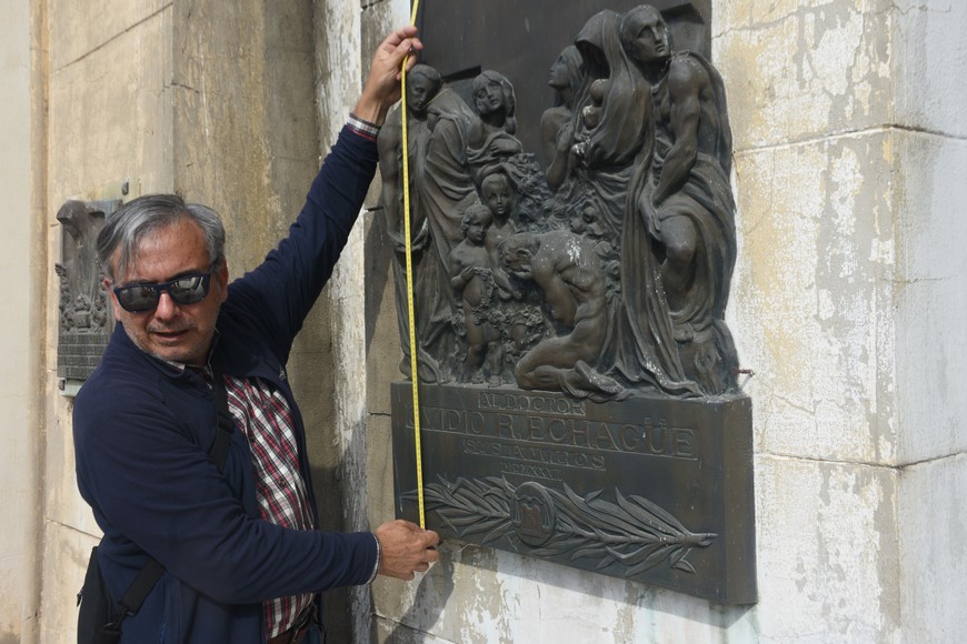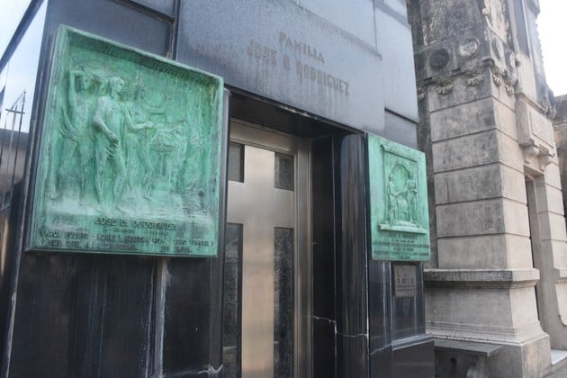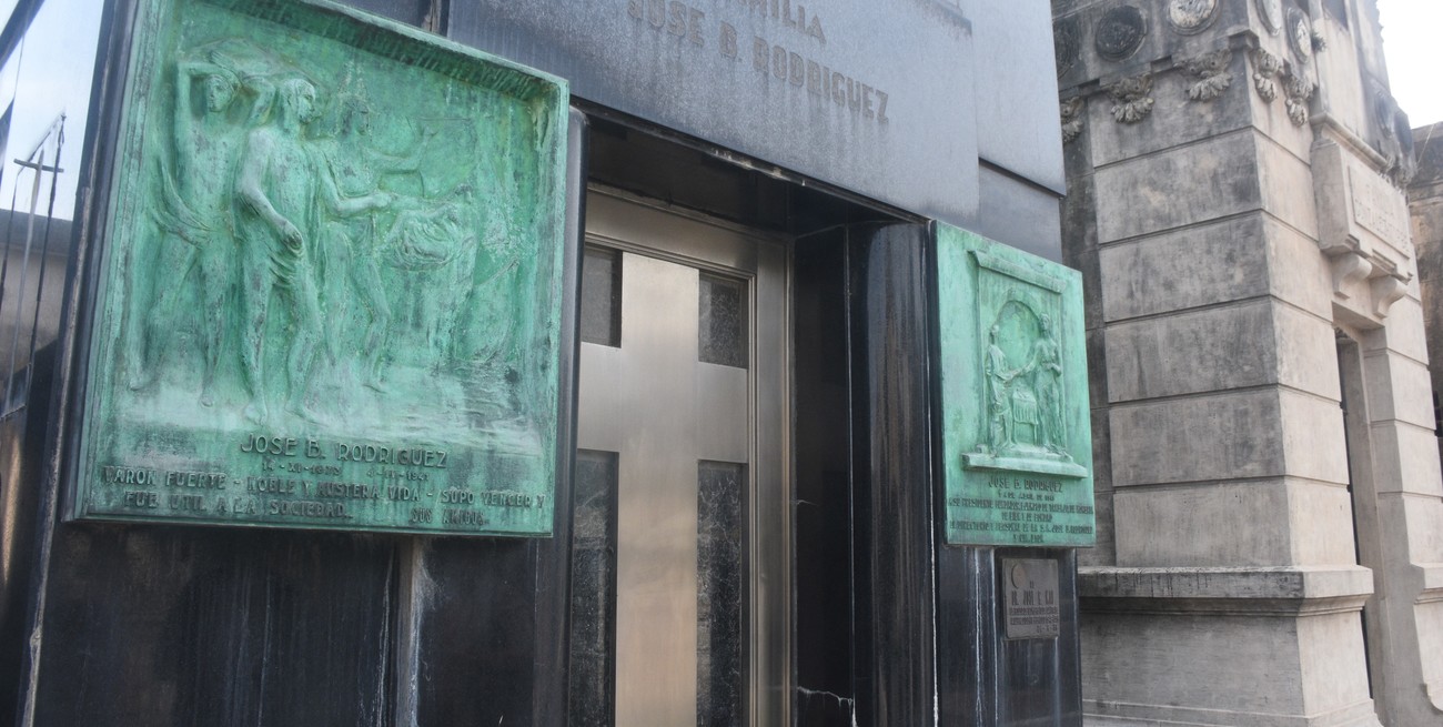 Una de las placas más destacadas se encuentra en la Avenida Nuestra Señora de Lourdes y fue hecha por la casa porteña Gotuzzo y Piana: “Gran parte de las magníficas placas que se pueden apreciar en las bóvedas del Cementerio La Recoleta, pertenecen a esta firma”, contó el arq. Juan Ortíz.
