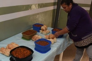“Durante la pandemia jamas dejamos de cocinar y atender a nuestras familias. Acá arrancamos muy temprano a cocinar con la intención de que a las 10 de la mañana ya puedan venir a retirar las viandas y el pan. Por día estamos haciendo unas 26, pero son familiares. Comen unas 4 personas”, dice Nelly Lorenzetti.