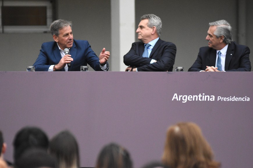 El intendente Emilio Jatón participó del acto que encabezó el presidente Alberto Fernández este viernes en Santa Fe. Crédito: Pablo Aguirre