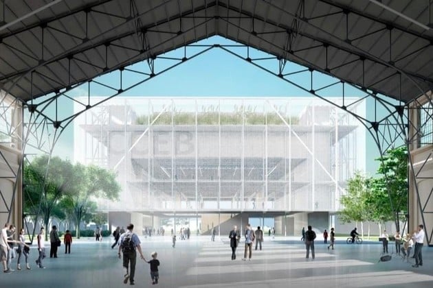 Entre la nave central y el nuevo edificio proyectado, habría una gran plaza pública para la realización de actividades culturales al aire libre.