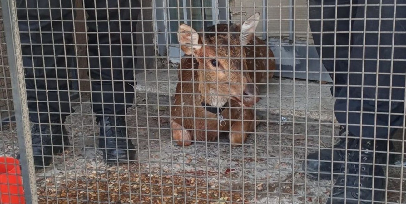 El animal fue interceptado por efectivos del Comando Radioeléctrico inmediaciones de las calles Almirante Brown e Iriondo. El venado presentaba heridas en una de sus patas traseras y en la boca.