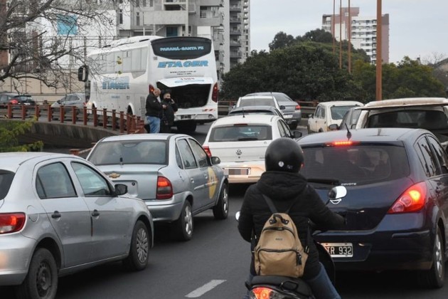 En la bajada desde el Puente Gobernador Oroño hacia Avenida Alem se registró una importante reducción de la circulación debido al desperfecto mecánico sufrido por un colectivo interurbano.