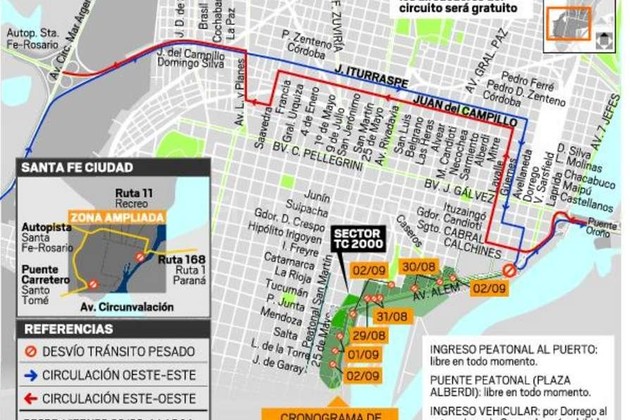 Por este motivo rigen algunas restricciones al tránsito, desvíos y derivaciones del tránsito pesado en distintas zonas de la ciudad. Con el correr de los días de la semana, la Municipalidad de Santa Fe irá cortando el tránsito en distintas calles que atraviesan el trazado del circuito callejero ubicado sobre las avenidas 27 de Febrero y Alem, y finalmente será interrumpido el mismo en dichas avenidas, que a su vez son ruta nacional.