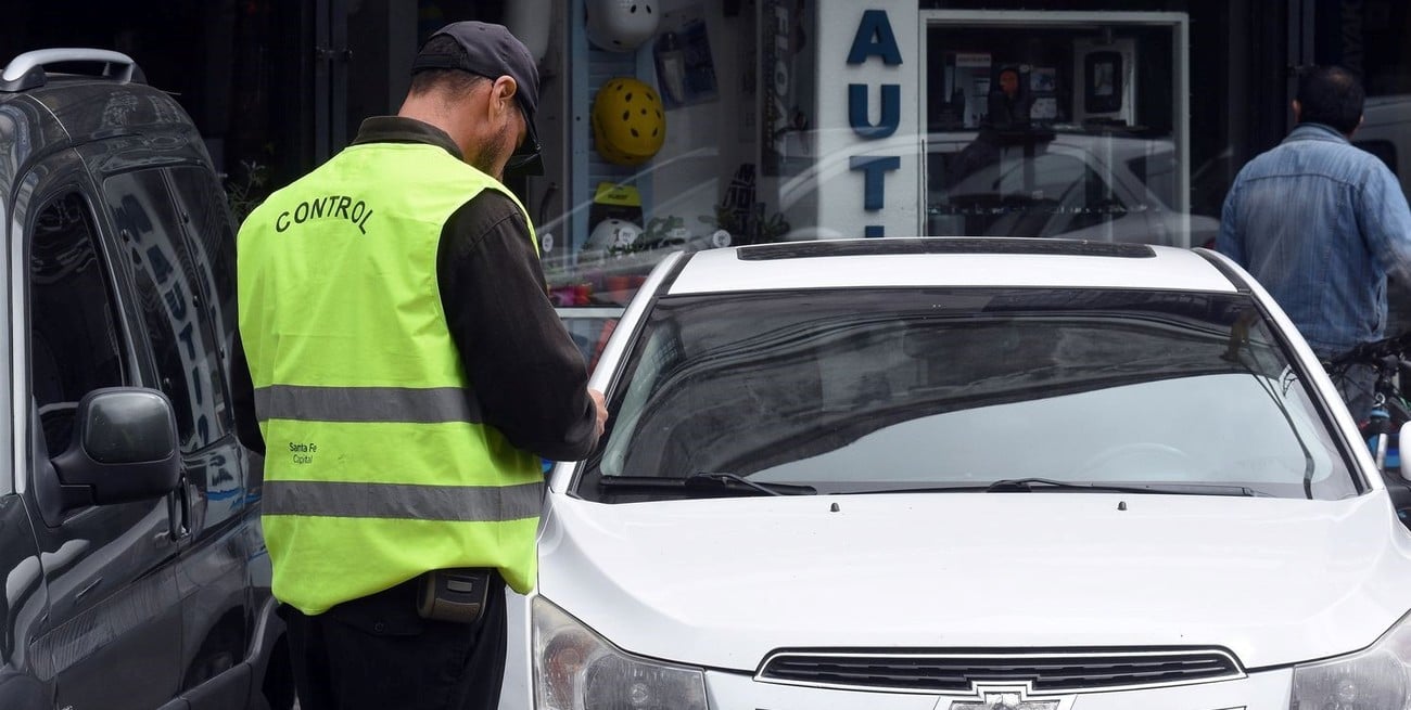 Un inspector supervisando un coche en el macrocentro de la ciudad. Crédito: Guillermo Di Salvatore