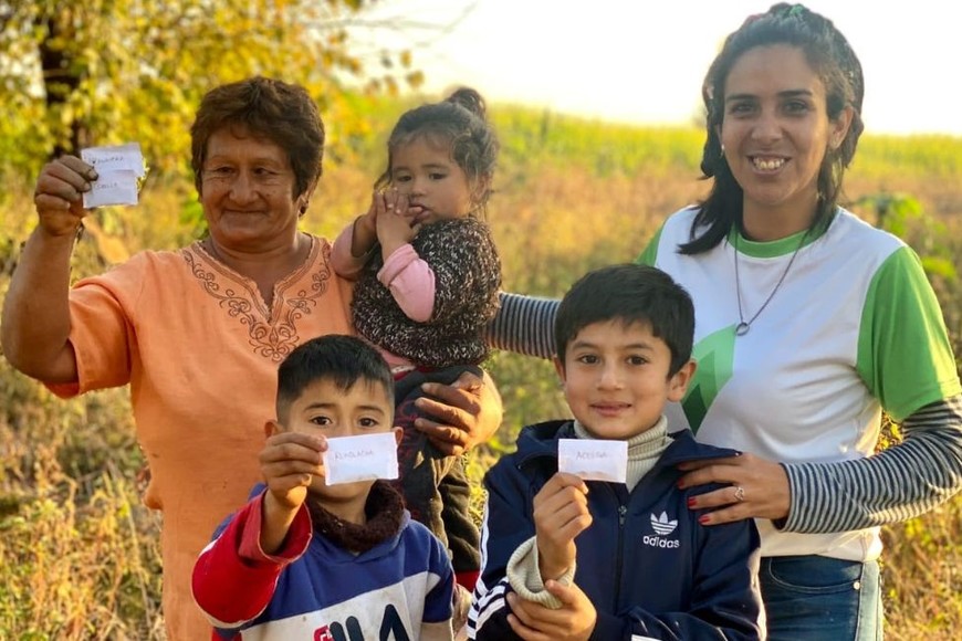Una familia muestra paquetitos con semillas, que irán a sembrarse en sus quintas. Crédito: Gentileza ACDI