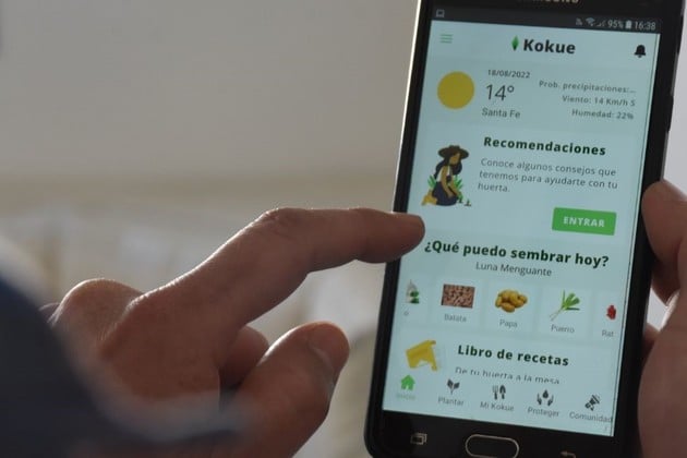 "Mi Kokue", por otro lado, es dentro de la propia aplicación como una suerte de huerta virtual donde cada productor indica qué cultivó (acelga, por caso); allí ingresa la fecha en que plantó, y toda esa información se incorpora directamente en esa sección personalizada. El usuario va recibiendo notificaciones sobre el cultivo que plantó: cómo hay que cuidar la acelga (siguiendo con el ejemplo), e incluso hay un conteo de días respecto de cuándo hay que cosecharla, como una especie de "recordatorio".