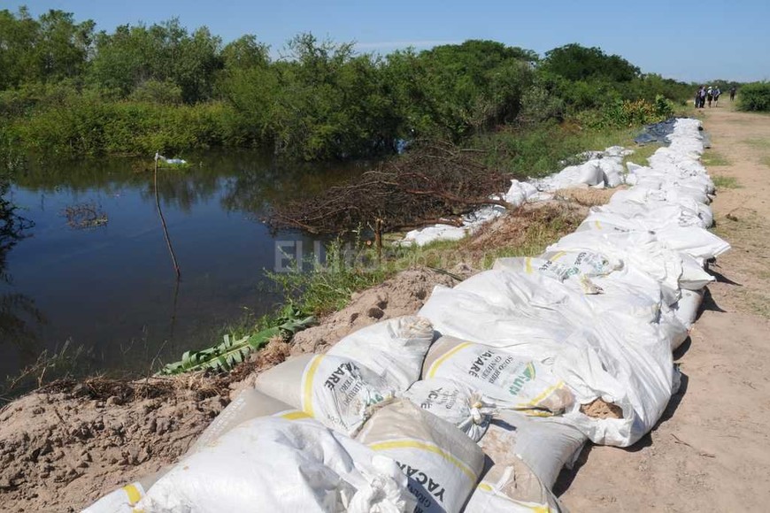 Por este motivo, los vecinos en colaboración la Agrupación Bomberos Zapadores, bomberos voluntarios, personal de Defensa Civil y del Ejército, trabajan a destajo colocando bolsas de arena para proteger dicho sector.