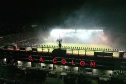 El escenario de 53 metros de ancho fue montado en el sector a donde están los bancos suplentes. Se trata de una gran estructura de hierros abulonados. “Sobre el mismo irá en el centro la banda, el sonido y dos pantallas gigantes a los costados.