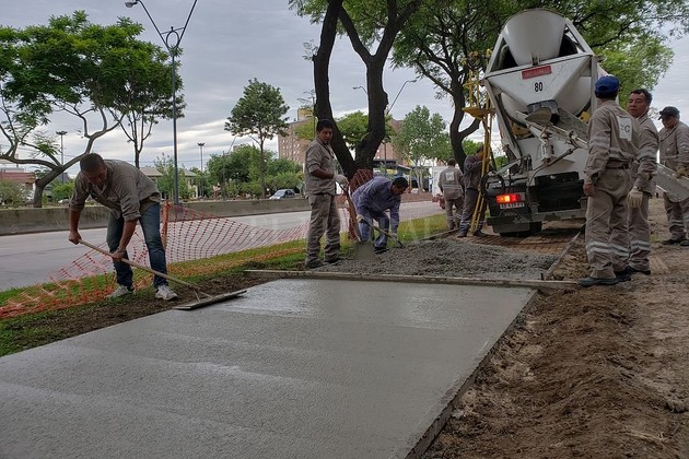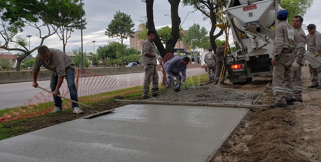 Una cuadrilla del municipio está realizando la carpeta de cemento en el tramo que va de Belgrano a Marcial Candioti. Será doble mano y llegará hasta Vélez Sarsfield, donde conectará con otra bicisenda.