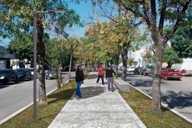 En el cantero central, se incorporarán columnas bajas de iluminación con tecnología Led, a fin de complementar la iluminación general. Además, se incluye la renovación e incorporación de mobiliario urbano (bancos, cestos, vados peatonales, etcétera).