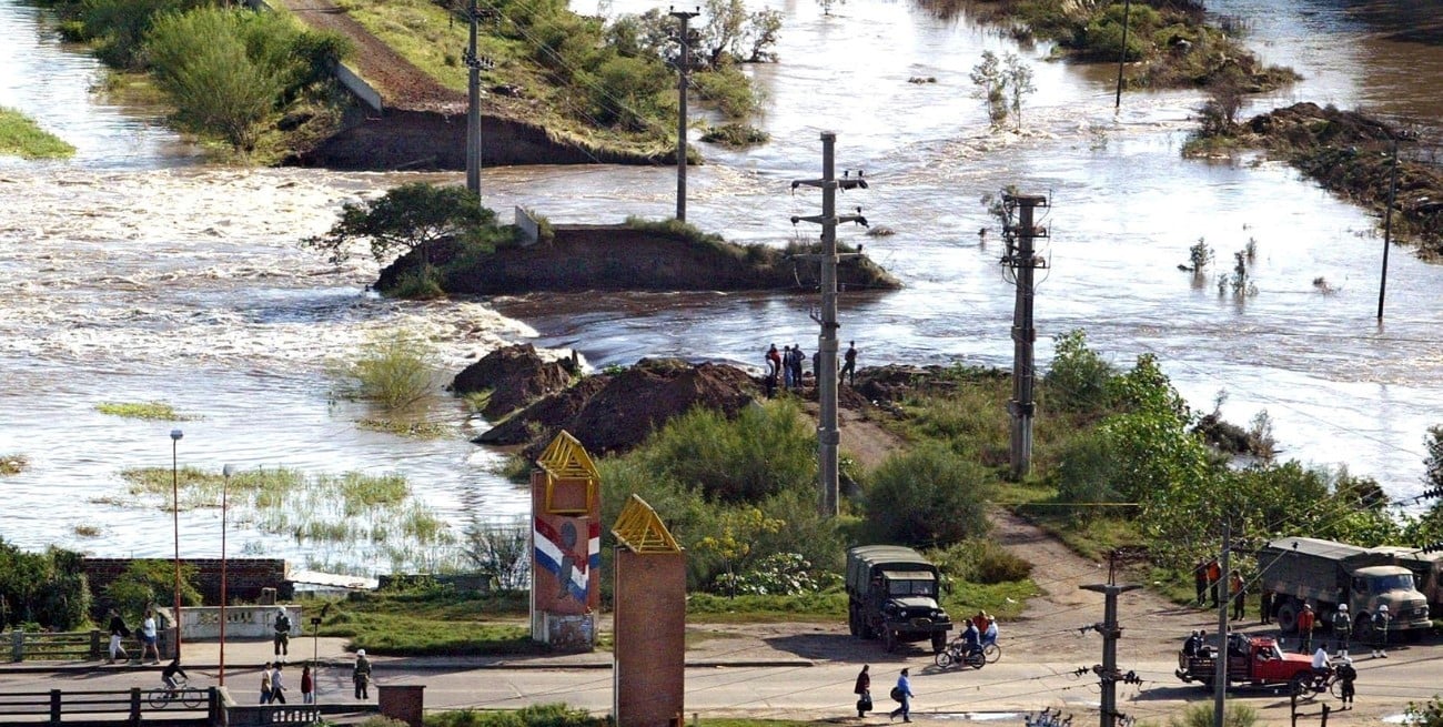 El avance del agua por avenida 27 de Febrero y las tareas que el Ejército y Vialidad Provincial llevaron a cabo durante el aquel miércoles 30 de abril de 2003.