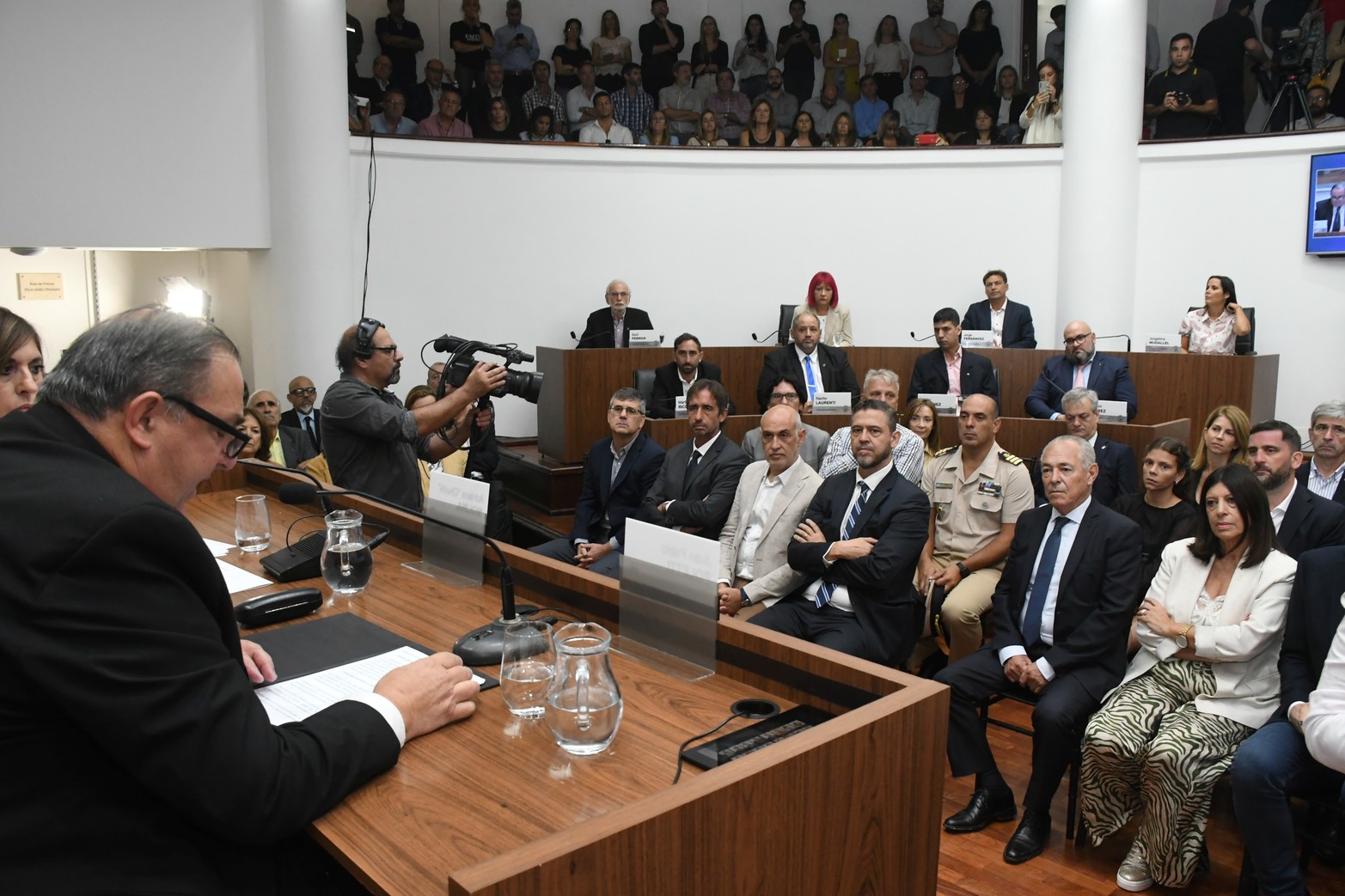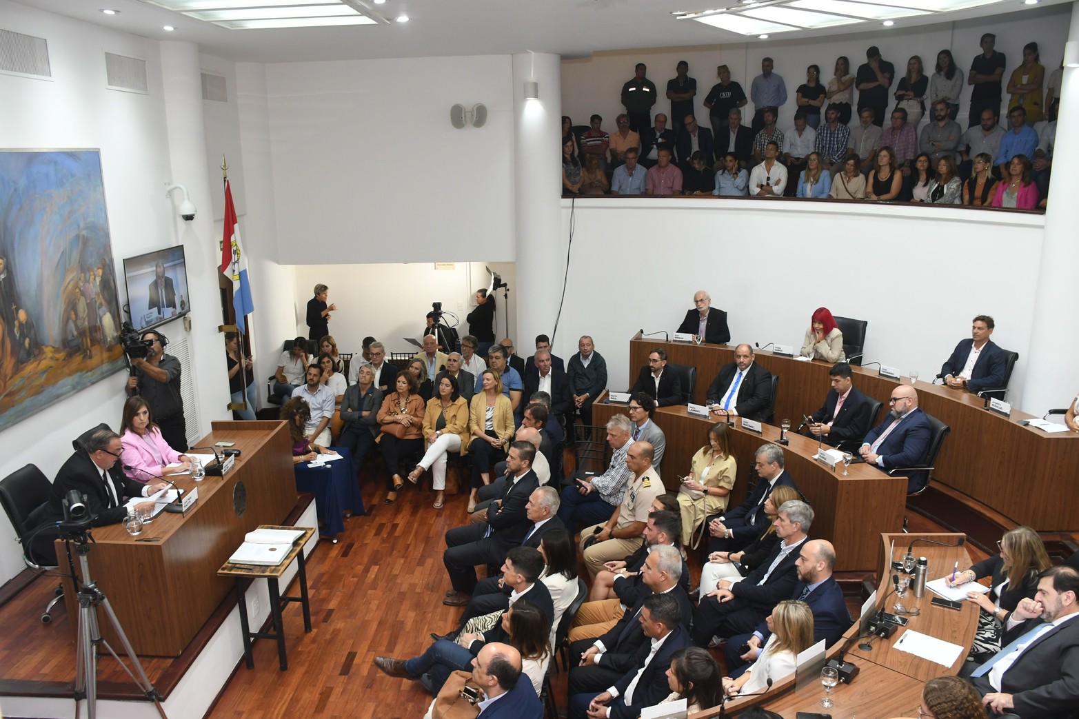 6 / 10 Apertura sesiones ordinarias concejo municipal el discurso del intendente Juan Pablo Poletti acompañado por la presidente del concejo Adriana "Chuchi" Molina Foto: Flavio Raina