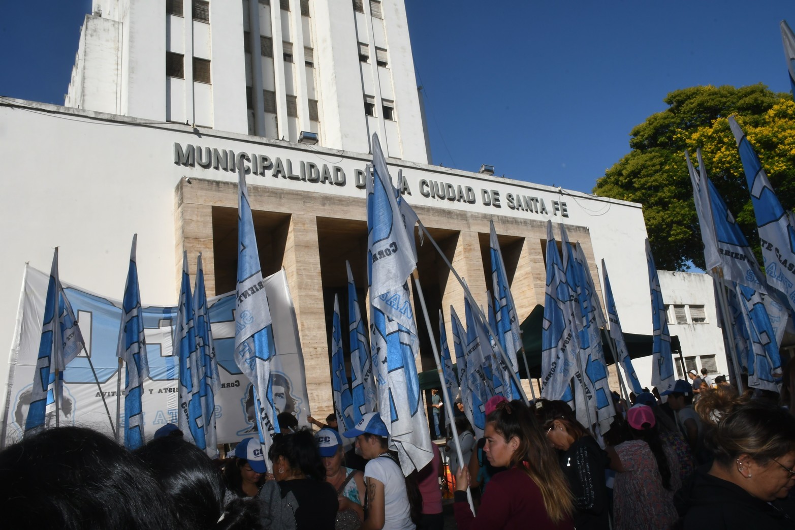 10 / 10 Manifestación de movimientos sociales en el ingreso al concejo municipal Foto: Flavio Raina