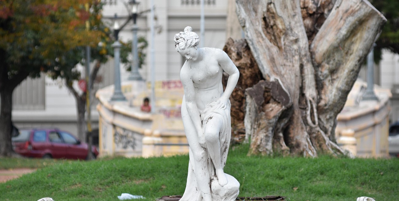 La estatua con la fuente en la Plaza España necesita restauración. Ahora, las piezas escultóricas deberán ser tuteladas por el Estado local. Pablo Aguirre