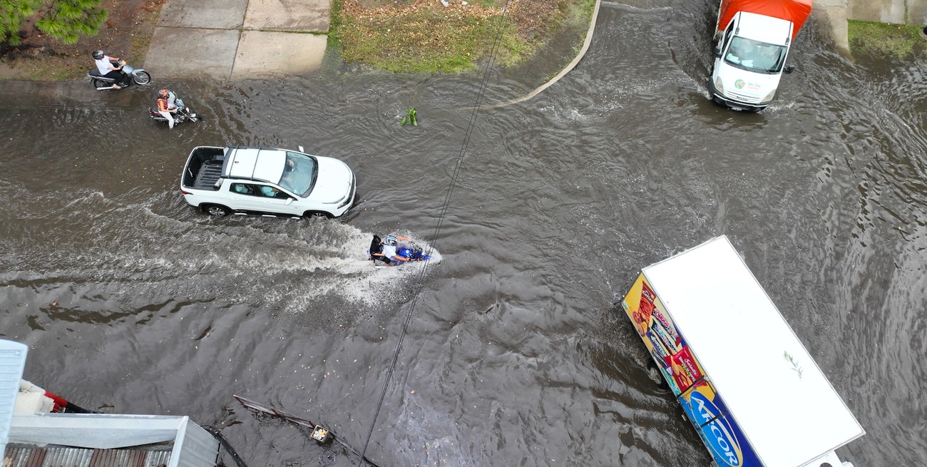 El registro gráfico es de la lluvia que cayó el 14 de marzo pasado. Así estuvo Bv. Zavalla y J. J. Paso. Hace 15 días, hubo otra precipitación importante en esta capital. Estos eventos climáticos se intensificarían a finales de año. Crédito: Fernando Nicola