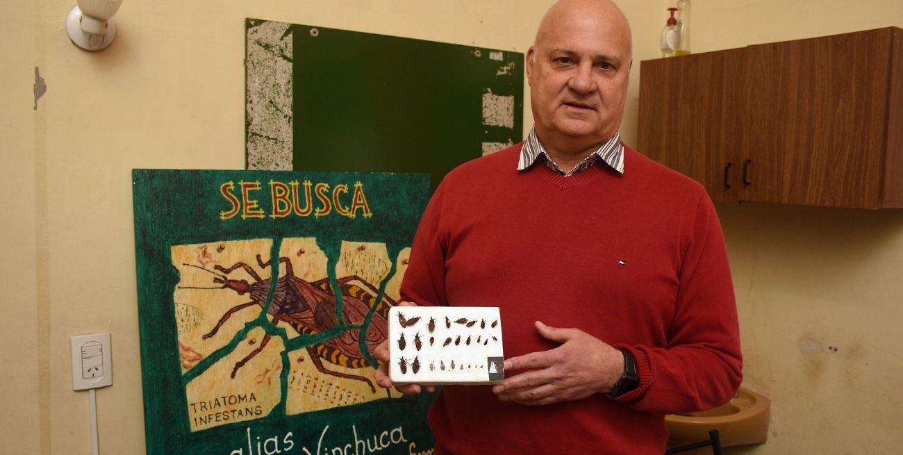 En términos claros y didácticos, los mismos que emplea para hablar del tema con estudiantes de Bioquímica y Medicina, Nepote detalla el panorama en la región. Y lo hace un poco en diálogo telefónico y otro poco en la oficina asignada al programa en el ex Hospital Italiano, donde un enorme cartel con la imagen pintada de una gran vinchuca alerta: "Se busca". Y esa búsqueda es una de las acciones del programa.
