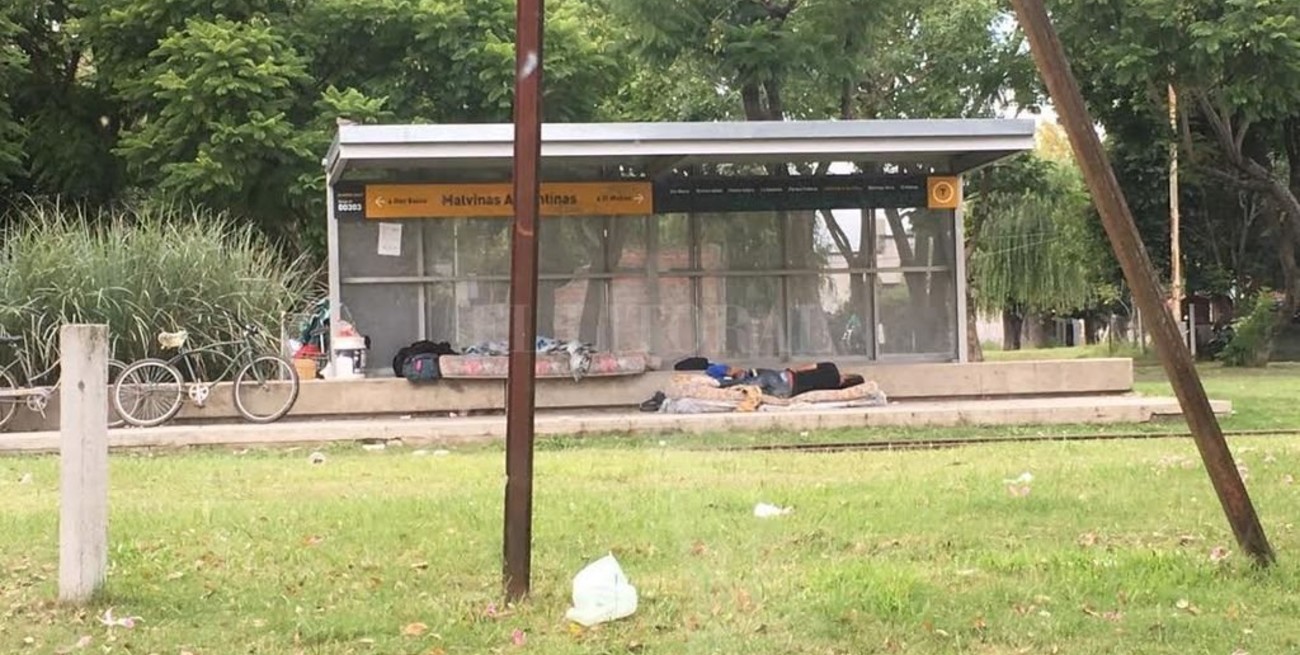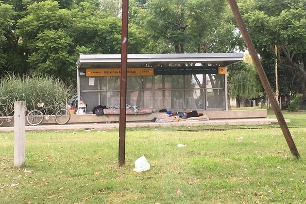 Como el tren no funciona, varias personas encontraron cobijo en la parada “Malvinas Argentinas”.