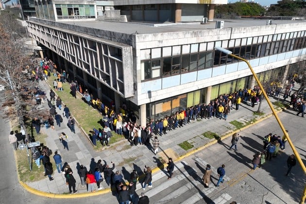 Luego de los discursos llegó el momento de cruzar a pie la cortada Falucho desde el parque Alberdi y comenzar a tomarse las manos en fila para abrazar el edificio del Correo para pedir por su preservación.