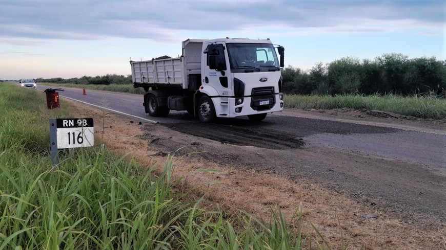Bacheos preventivos en la RN 98: hay reducción de carril entre Vera y Tostado