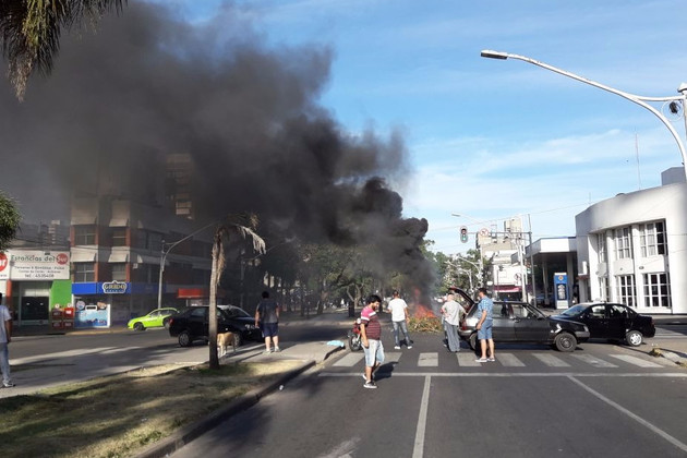 En diversos puntos de la ciudad, los choferes cruzaron los autos e impiden la circulación. Piden medidas de seguridad tras el asalto seguido de muerte ocurrido en barrio Roma.