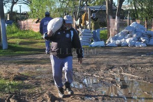 Tiraban bolsas de arena y tierra en el camino de acceso al Club de Caza y Pesca en Colastiné Sur.
