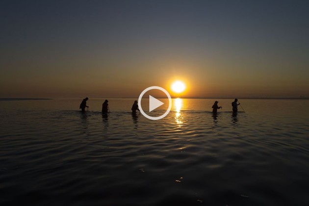 “Vamos a cruzar la laguna”, cuenta uno de los experimentados aventureros. “Es algo que pasa cada 50 años y no nos podíamos perder esta oportunidad”.