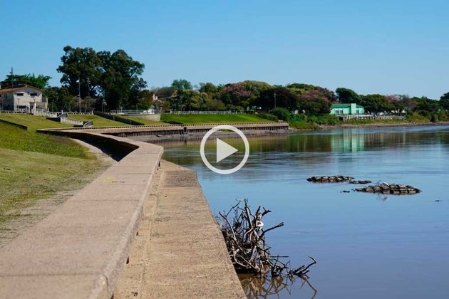 En la costanera de Santo Tomé se puede ver la malla protectora contra inundaciones. En el balneario se amplió el sector de arena. Por su parte, el “vado”, está casi sin agua.
