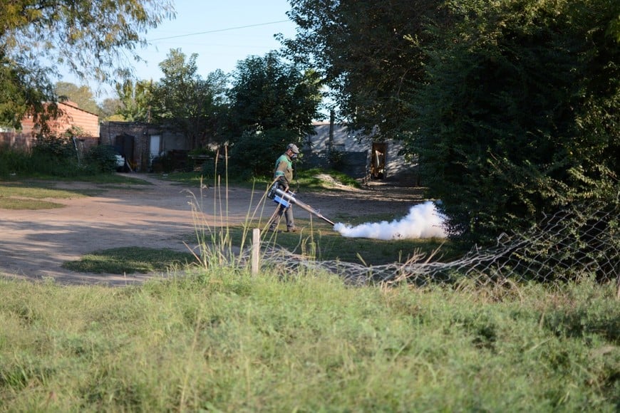 La novedad estuvo en un equipamiento que se puso en acción: una termoniebla para fumigar y combatir los mosquitos adultos, de modo que funcione complementariamente a la medida más importante: el descacharrado.
