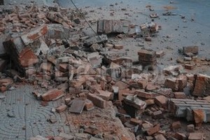 La estructura que cedió está compuesta por escombros y ladrillos unidos con mezcla y los resíduos quedaron sobre la vereda y la calle durante varias horas hasta que se inicaron las tareas de remoción.