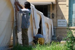 Tenés que leerComenzó el desarme de la manga del hospital Cullen¿Por qué no se terminará el desarme este mismo lunes? Ocurre lo siguiente: si bien el retiro de toda la formación de caños estructurales y lonas podría concluirse hoy, hasta mañana quedará la rampa (de acceso de camillas y carros) que está conectada con la escalera principal del hospital. Y esta rampa ocupa una parte de la calzada de la Av. Freyre. El desarme de esta estructura es más compleja.