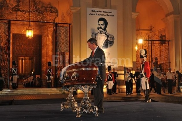 Durante la calma y calurosa siesta del 7 de noviembre de 2011 los enviados de Schiaretti -entre los que estaba su esposa Alejandra Vigo-; el ministro de Justicia, Luis Angulo; el secretario de Cultura, Jaime García Vieyra y el de Cultos, Javier Romero; el historiador santafesino Leo Hillar Puxeddu, el antropólogo Darío Olmos y el sobrino tataranieto de Bustos, Horacio Grigioni Bustos se llevaron un ataúd con huesos. Allá en Córdoba los esperó el por entonces gobernador que, muy compungido, abrazó y cubrió el féretro con una bandera nacional. Al día siguiente, ubicaron los restos al costado de la nave central de la catedral de Córdoba donde hasta hoy los custodian una guardia de honor de la provincia.