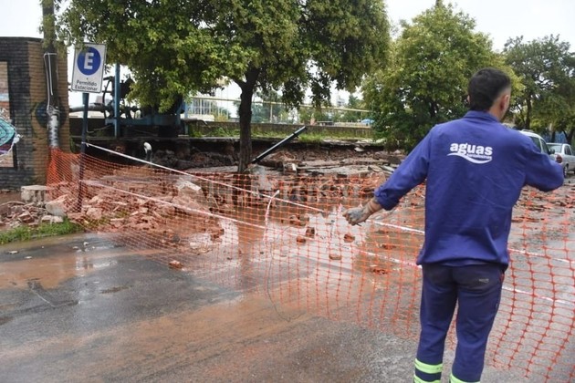 Como hecho de mayor gravedad, el daño afectó a uno de los piletones de ASSA y el agua empezó a correr hacia la calle, inundando rápidamente la cuadra.