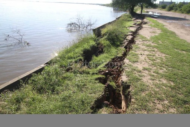 Uno de los puntos más afectados de las últimas horas es el Paseo de la Laguna, en la continuidad de la Costanera Este de la capital provincial. Allí, se desmoronó una parte de la defensa.