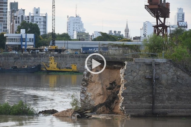 Se desmoronó una vieja construcción que divide los diques en el puerto de Santa Fe