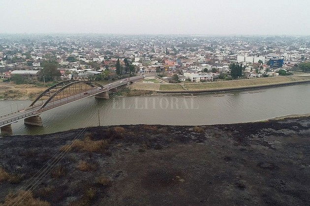 Esas fueron algunas de las consecuencias de la quema de pastizales de este miércoles en zona de bañados del río Salado, frente a la ciudad de Santo Tomé y a metros del Puente Carretero.